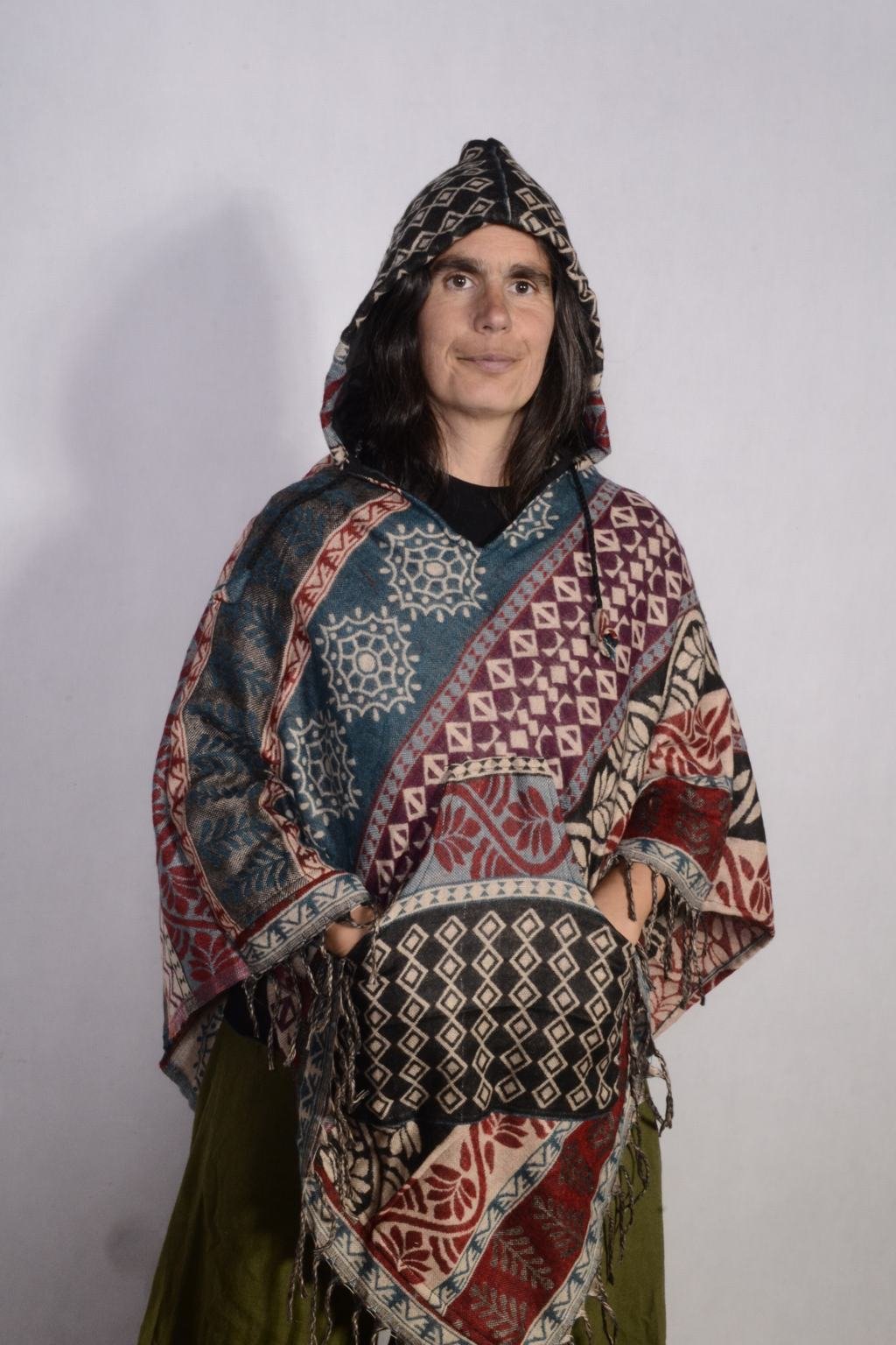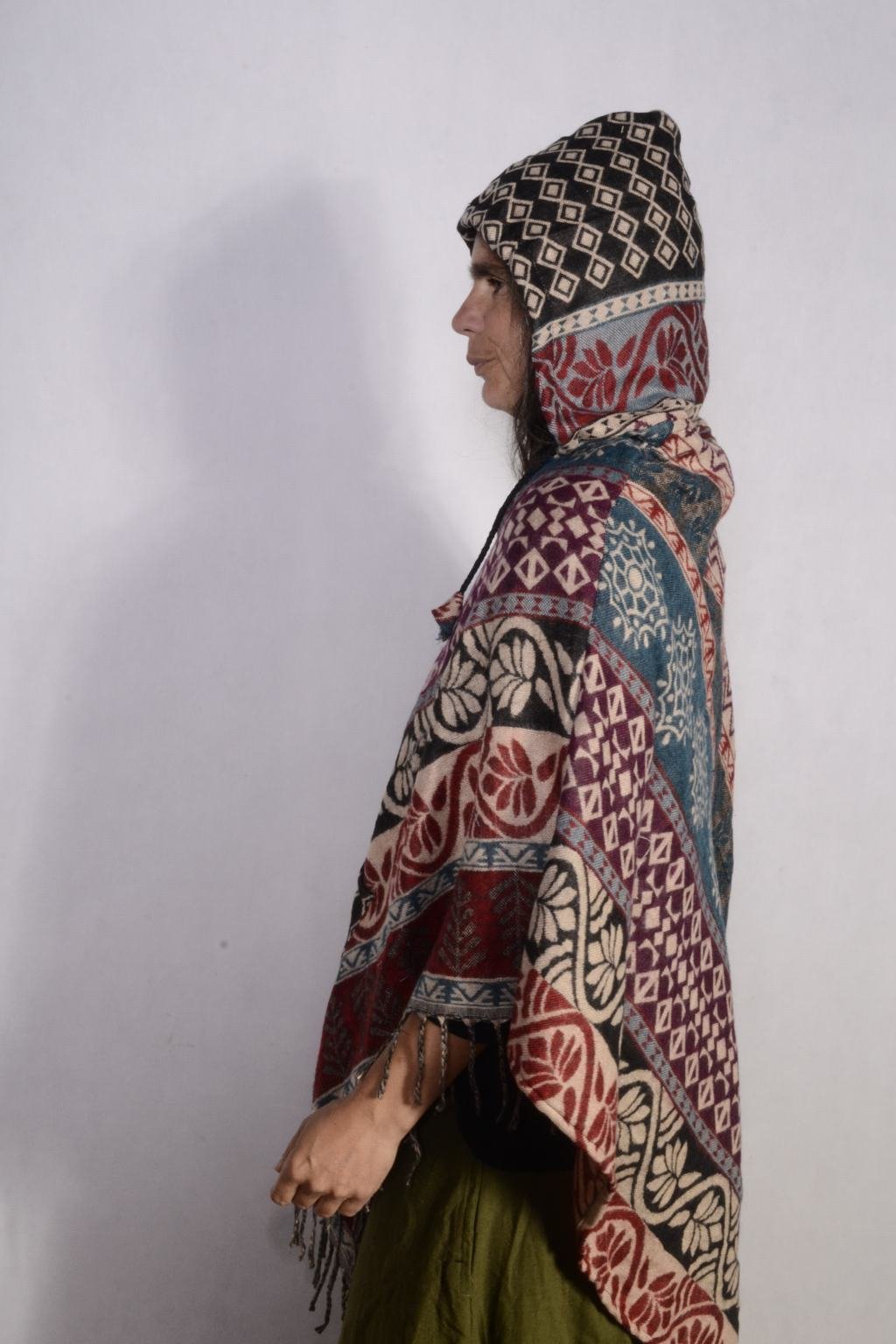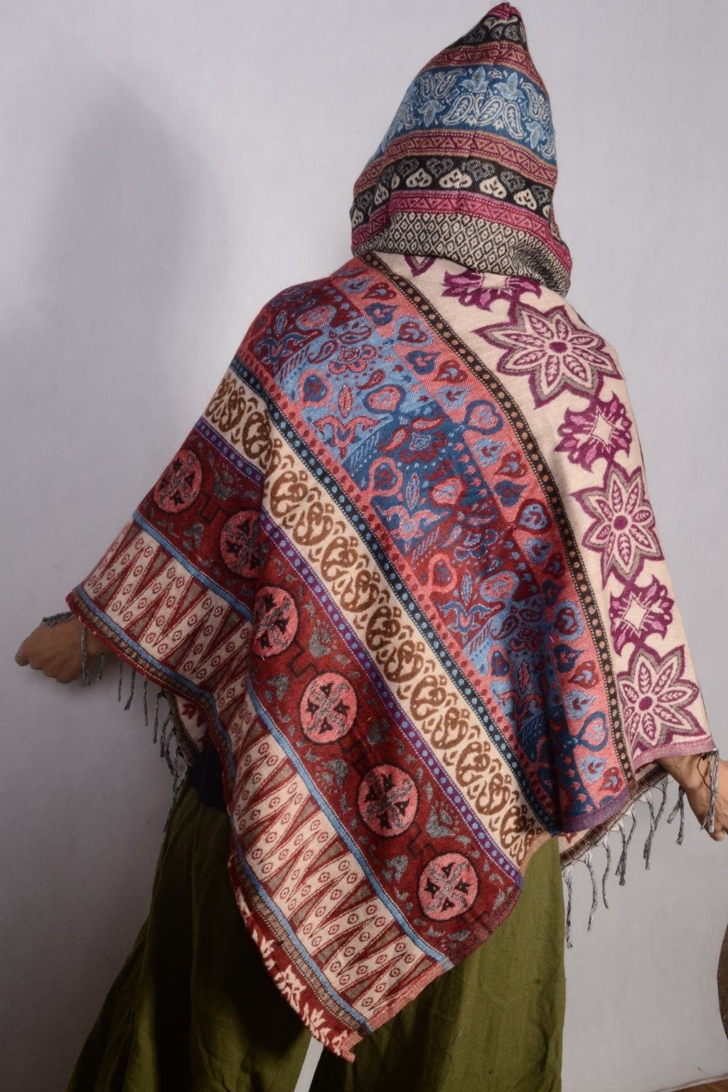 - Pohodlné pončo s kapucí vyrobené z indické deky