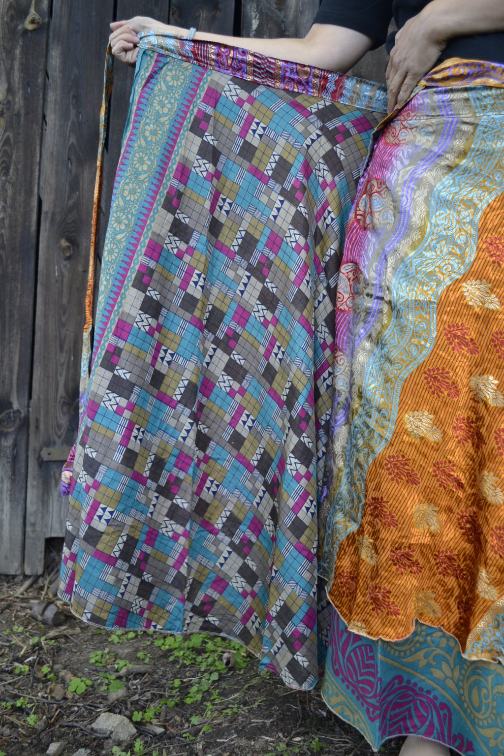 - Dlouhá, krásná, oboustranná zavinovací sukně